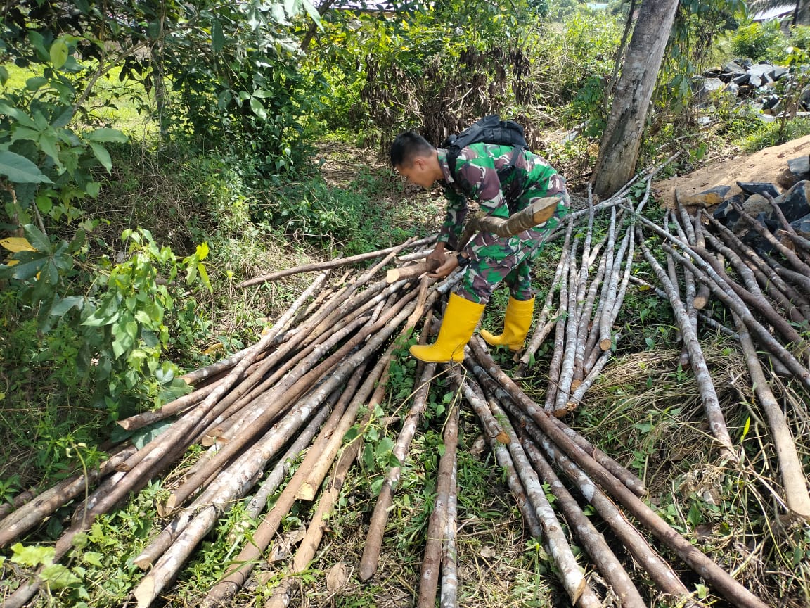 Bengkayang – Warga dan Anggota Satgas TMMD ke-111 Kodim 1202/ Skw juga menyiapkan material kayu untuk jembatan.