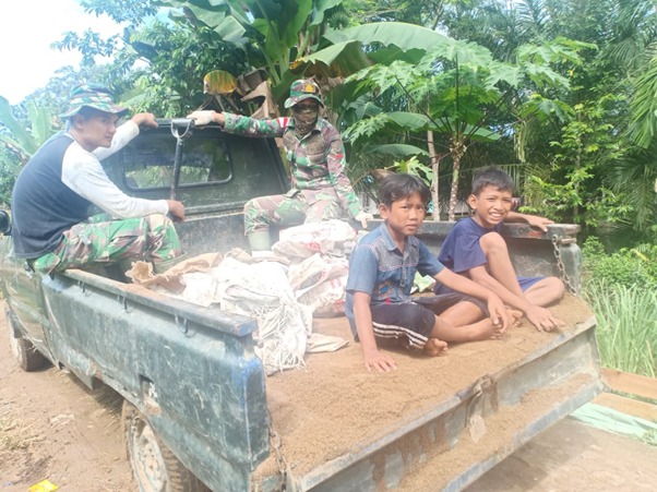“Mereka selalu saja mencari kesempatan supaya bisa naik kendaraan dinas TNI” ungkap Praka Dymyati salah satu anggota satgas TMMD yang merupakan sopir mobil pickup dinas Kodim 1207/Pontianak.