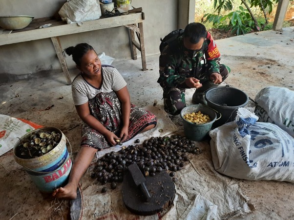Kubu Raya – Sertu Asiani anggota satgas TMMD ke-111 Kodim 1207/Pontianak datangi petani jengkol di Dusun Maju Jaya, Desa Kuala Mandor B, Kecamatan Kuala Mandor B, Kabupaten Kubu Raya, Sabtu (03/07/2021).
