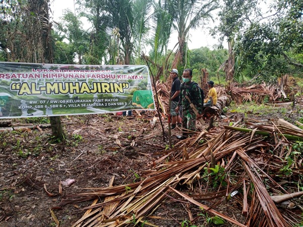 Anggota Satgas TMMD Ke-111 Kodim 1207/Pontianak Ikut Bersihkan Lahan Wakaf
