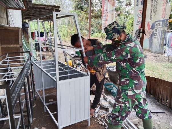 Kubu Raya – Untuk mempererat tali silaturahmi dan kerja sama yang baik bersama komponen masyarakat serta terwujudnya kemanunggalan TNI dengan rakyat, anggota satgas TMMD ke-111 Kodim 1207/Pontianak Sertu Sugeng secara rutin dan berkesinambungan melaksanakan komunikasi sosial (komsos) bersama bapak Iyan pengrajin lemari etalase di Dusun Maju Jaya, Desa Kuala Mandor B, Kecamatan Kuala Mandor B, Kabupaten Kubu Raya, Jumat (02/07/2021).