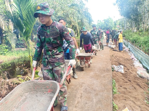 Kubu Raya – Satgas TMMD ke-111 Kodim 1207/Pontianak melaksanakan gotong royong pengecoran jalan bersama masyarakat Desa Kuala Nandor B, Kecamatan Kuala Mandor B, Kabupaten Kubu Raya, Kamis (24/06/2021).