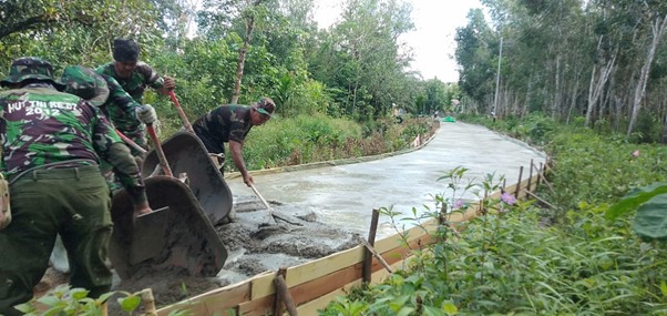 TNI menyulap akses jalan sepanjang 1100 meter menjadi mulus beralaskan rabat beton di Dusun Maju Jaya. Sebelum di cor, jalan tersebut merupakan jalan tanah berbatu. Jalan itu selama ini digunakan masyarakat sebagai akses utama mereka. Setiap harinya, masyarakat setempat menggunakan jalan tersebut untuk mengangkut hasil perkebunan yang mereka garap.