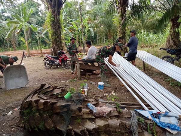 Kubu Raya – Danramil 1207-06/Sungai Ambawang dampingi satgas TMMD ke-111 Kodim 1207/Pontianak mengecat tiang bendera di Dusun Maju Jaya, Desa Kuala Mandor B, Kecamatan Kuala Mandor B, Kabupaten Kubu Raya, Jumat (09/07/2021).