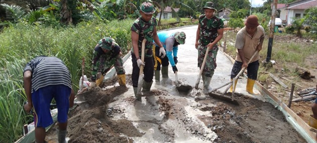 Kubu Raya – Satgas TMMD Reguler Kodim 1207/Pontianak. Terus berjuang dengan semangat yang tinggi dengan menyingkirkan semua masalah dan kendala yang sering dialami selama pengerjaan Rabat Beton Jalan Di Desa Kuala Mandor B. Minggu (04/07/2021).