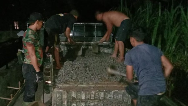 “Walau malam hari kami tetap melaksanakan pengerjaan rabat beton jalan semaksimal mungkin, anggota TNI yang tergabung dalam satgasTMMD dan warga sangat antusias membantu pengerjaan jalan rabat beton, mereka bekerja ekstra untuk menyelesaikannya target dan alhamdulillah malam ini sudah mencapai kurang lebih 550 meter” kata Danramil.