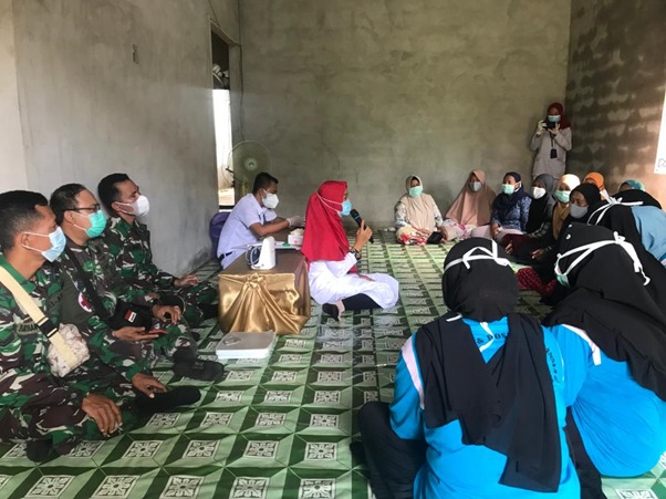 Bersama ibu-ibu yang tergabung dalam gerakan masyarakat hidup sehat (germas), tim kesehatan TMMD dipimpin Sertu Bardianta melaksanakan sosialisasi hidup sehat di Desa Kuala Mandor B
