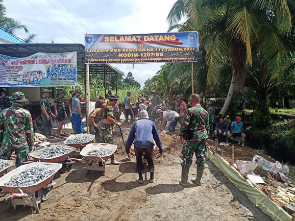 Hampir Selesainya Pembangunan Jalan Rabat Beton, Satgas TMMD Ke-111 Kodim 1207/Pontianak Bekerja Lebih Semangat