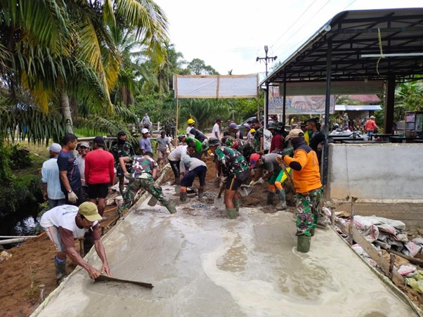 Sasaran fisik dalam kegiatan TMMD ini sudah mencapai target. Hari ini adalah hari terakhir pengecoran jalan rabat beton. Walaupun penutupannya masih 2 hari lagi, namun anggota satgas ingin menyelesaikan kegiatan tersebut sebelum hari penutupan. Warga yang ikut membantu pun saling berbagi tugas. Ada yang mengaduk material cor dengan mesin molen dan ada juga yang mengaduk material secara manual. Tujuannya agar target dapat dicapai dengan maksimal.