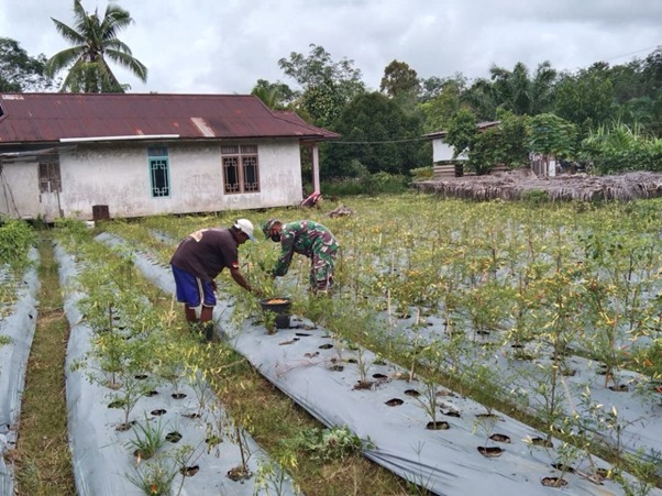 Kubu Raya – Peran Babinsa di masyarakat sangatlah dinanti kehadirannya di desa baik dalam urusan pembangunan, membantu penyuluhan sampai dengan urusan pertanian. Hal ini terlihat saat pelaksanaan TMMD ke-111 Kodim 1207/Pontianak di Desa Kuala Mandor B. Sertu Haryatin menyempatkan diri untuk mendampingi petani cabai yang sedang panen di Dusun Maju Jaya, Desa Kuala Mandor B, Kabupaten Kubu Raya, Senin (21/06/2021).