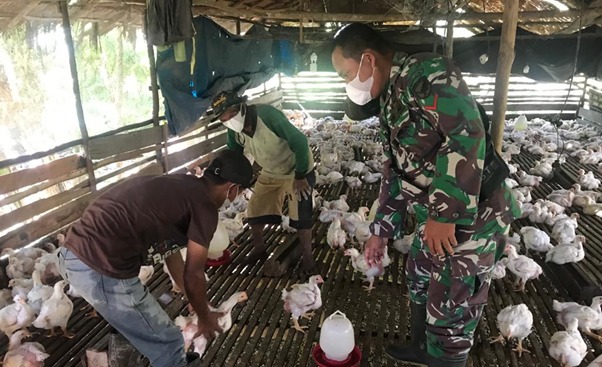 Jelang Idul Adha, Satgas TMMD Ke-111 Kodim 1207/Pontianak Kunjungi Peternak Ayam