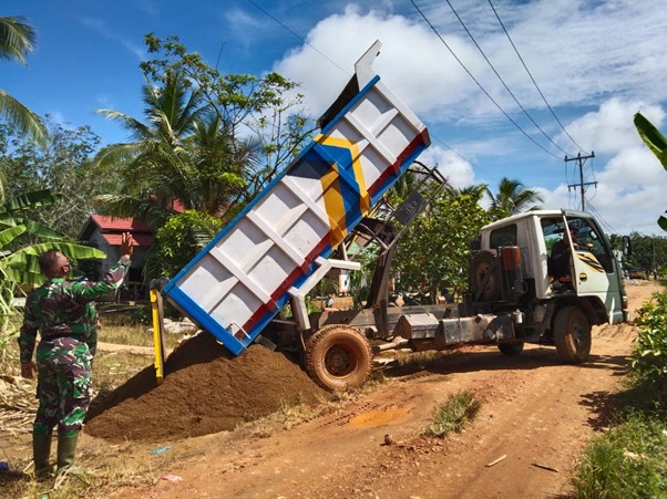 Danton satgas TMMD ke-111 Kodim/Pontianak, Kapten Arm Tri Yuliantoro mengatakan, “Keberadaan material sangat dibutuhkan agar pelaksanaan serta pengerjaannya sesuai dengan perencanaan, pengerjaan terus dilakukan sambil memanfaatkan material yang sudah ada dan dropping material kami lakukan terus agar pekerjaan tidak terhambat karena kekurangan material” katanya.