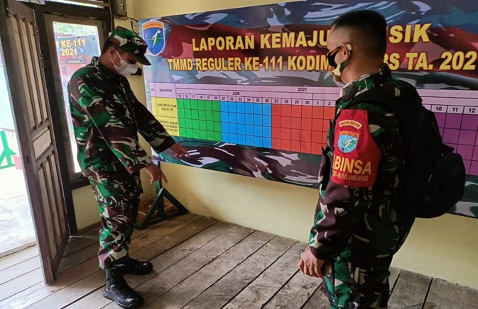 Kenapa kita tempatkan personel di rumah-rumah warga, karena ini sebagai bentuk atau wujud kemanunggalan TNI dengan rakyat, dengan tinggalnya personel yang tergabung dalam Satgas TMMD Reguler ke-111 mereka harus tetap menjaga protokol kesehatan, menjaga kebersihan dan kesehatan diri selama menjalani kegiatan TMMD, serta memberikan sosialisasi kepada masyarakat tentang Penerapan Pembatasan Kegiatan Masyarakat (PPKM) Mikro guna pencegahan penyebaran Virus Covid-19, Ujar Kasdim