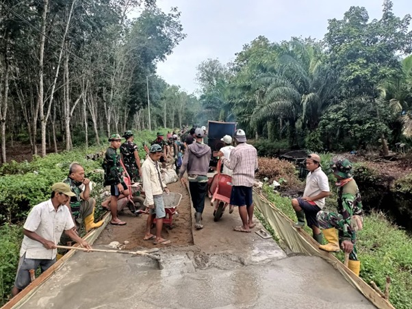 “Dalam gotong-royong antara prajurit TNI dan warga yang tidak kenal lelah, prajurit TNI dan warga masyarakat bekerja keras bersama pada siang hari, bahkan hingga malam,” kata Kadus.