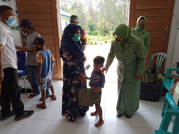 Kubu Raya – Ketua Persit Kartika Candra Kirana cabang LI Kodim 1207/Pontianak mengikuti kegiatan sunatan massal di lokasi TMMD ke-111 yang berada di Dusun Maju Jaya, Desa Kuala Mandor B, Kecamatan Kuala Mandor B, Kabupaten Kubu Raya, Jumat (09/07/2021).