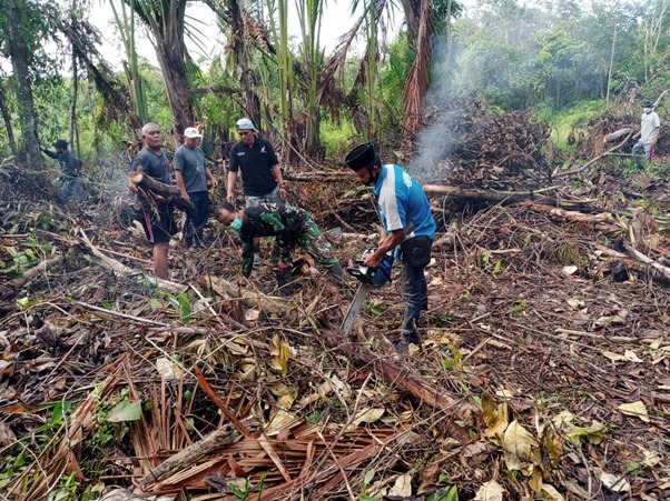 Masyarakat Bersama Satgas TMMD Ke-111 Kodim 1207/Pontianak Gotong Royong Bersihkan Tanah Wakaf