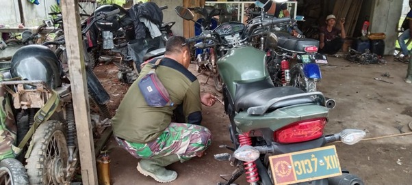 Merawat Kendaraan Roda Dua Milik Satgas TMMD Ke-111 Kodim 1207/Pontianak