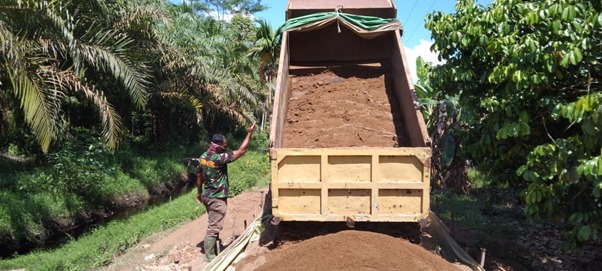Kubu Raya – Personil satgas TMMD ke-111 Kodim 1207/Pontianak terus mendapat pasokan material pasir dari beberapa mobil dump truk yang silih berganti membawa pasir dan selalu dicek kualitas pasirnya oleh anggota satgas TMMD, Jumat (09/07/2021).