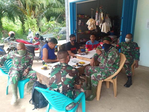Ngopi Santai Anggota Satgas Bareng Warga Menunggu Material