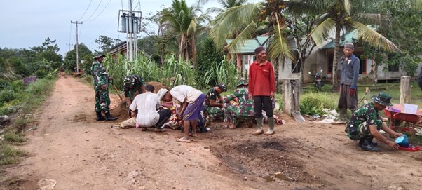 Kubu Raya – Sesuai slogan “TNI Maju, Berjuang, Tumbuh dan Berkembang bersama Rakyat”, dalam setiap kegiatan TNI selalu berdampingan dengan rakyat dan bergandeng tangan bersama-sama karena merupakan komponen utama yang tidak bisa dipisahkan. Terbukti dalam program TMMD ke-111 Kodim 1207/Pontianak di Dusun Maju Jaya, Desa Kuala Mandor B, Kecamatan Kuala Mandor B, Kabupaten Kubu Raya, Rabu (23/06/2021).