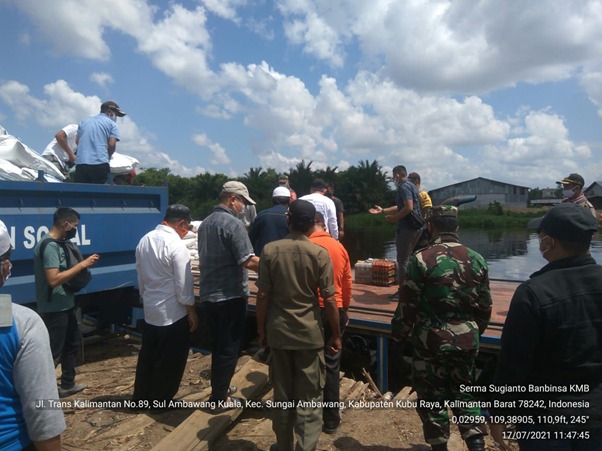 Kubu Raya – Pasca kegiatan TMMD ke-111 Kodim 1207/Pontianak, Babinsa membantu pemerintah kabupaten dan kecamatan untuk penyaluran bantuan korban banjir di Desa Kubu Padi, Kecamatan Kuala Mandor B, Minggu (18/07/2021).