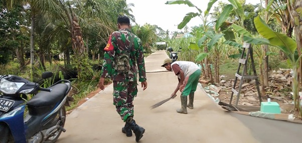Kubu Raya – Pelaksanaan TMMD ke-111 Kodim 1207 Pontianak telah berakhir, tampak warga disela kesibukannya menyapu sisa-sisa pasir yang masih tersisa di jalan yang baru selesai dicor oleh satgas TMMD bersama warga, Minggu (18/07/2021).