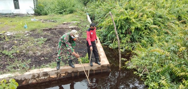 Kubu Raya – Kebakaran hutan dan lahan (Karhutla) dapat menyebabkan kerusakan pada harta benda dan kehidupan manusia, serta kerusakan pada ekosistem tumbuhan maupun hewan. Salah satu anggota satgas TMMD ke-111 Kodim 1207/Pontianak Sertu Komang melaksanakan patroli bersama Manggala Agni di Dusun Pelita Jaya, Desa Kuala Mandor B, Kecamatan Kuala Mandor B, Kabupaten Kubu Raya, Selasa (22/06/2021).