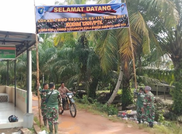 Dijelaskan Babinsa setempat Sertu Sugianto, pemasangan banner dilakukan agar para tamu yang akan datang ke desa binaannya tahu bahwa mereka sudah memasuki Desa Kuala Mandor B, tepatnya Dusun Maju Jaya dan lokasi pembangunan TMMD ke-111 TA. 2021 Kodim 1207/Pontianak.