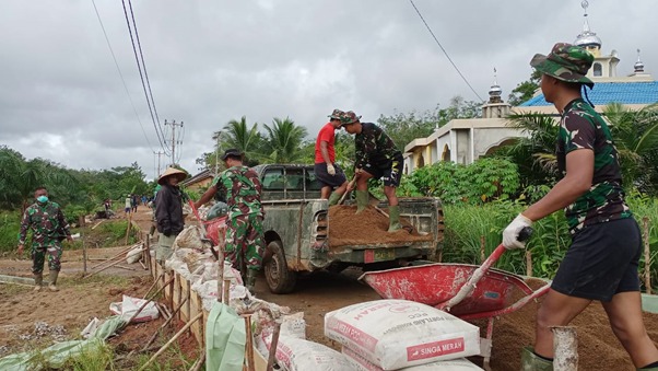 Para prajurit TNI dari 3 matra yang membantu kesulitan rakyat tersebut kini sedang membangun negeri lewat program TMMD ke- 111. Sejak dibukanya TMMD ke-111, terlihat para prajurit sejati yang selalu mengawal keutuhan NKRI mengaduk adonan dari semen, pasir dan air untuk membangun infrastruktur yang diprogramkan dalam TMMD ke-111 Kodim 1207/Pontianak yaitu berupa pengecoran jalan rabat beton sepanjang 1.100 meter.