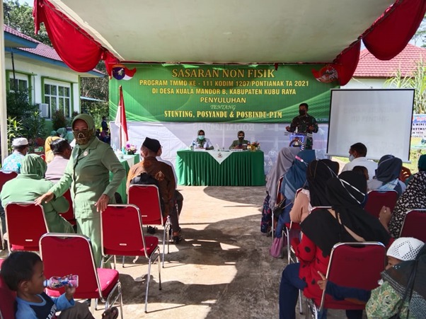Dansatgas TMMD ke-111 Kodim 1207/Pontianak (Kolonel Inf Jajang Kurniawan, S.I.P., M.M.) mengatakan bahwa penyuluhan ini merupakan kegiatan non fisik TMMD ke-111 Kodim 1207/Pontianak. Dimana menurutnya pencegahan stunting adalah upaya melahirkan generasi muda yang sehat dimasa depan.