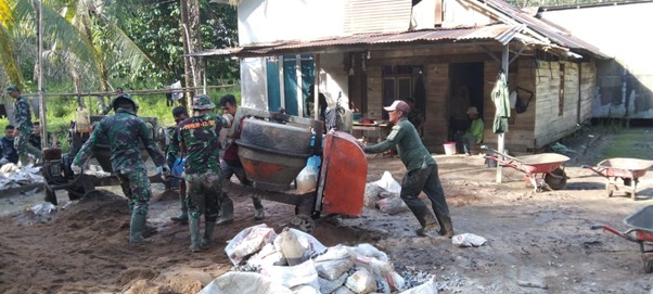 Kubu Raya – Satgas TMMD ke-111 Kodim 1207/Pontianak terus berjuang dengan semangat yang tinggi walaupun banyak menguras tenaga dan pikiran selama pengerjaan rabat beton jalan di Desa Kuala Mandor B, Senin (05/07/2021).