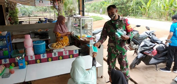 Salah satu anggota satgas TMMD Serda Manto membagikan masker secara gratis kepada masyarakat Desa Kuala Mandor B. Serda Manto mengatakan, “Kegiatan seperti ini terus dilakukan sebagai bentuk kepedulian satgas TMMD terhadap warga agar terhindar dari penyebaran maupun penularan covid-19. Pada kegiatan ini kami juga membagikan masker kepada warga yang tidak menggunakan masker” ungkap Serda Manto.