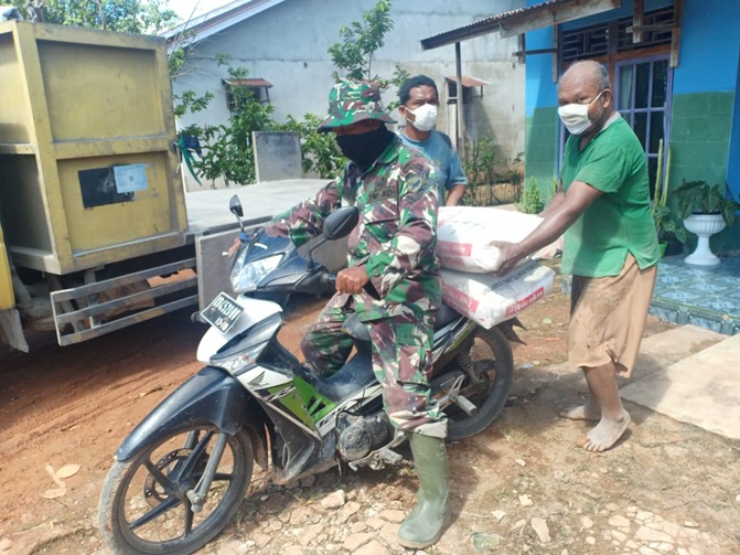 Satgas TMMD Ke-111 Angkut Material Semen Dengan Menggunakan Motor