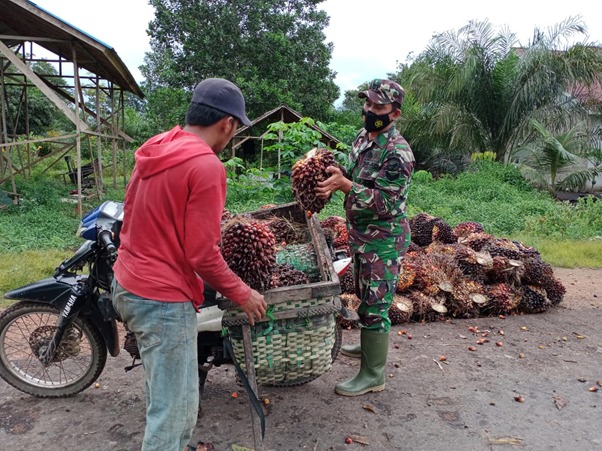 Satgas TMMD Ke-111 Kodim 1207/Pontianak Bantu Warga Panen Kelapa Sawit