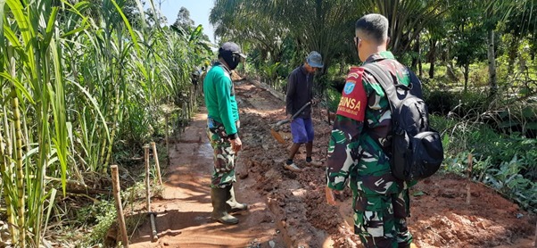 Tak mau material terhambat, jalan masuk lokasi menjadi amat vital ini tak terkecuali bagi Sertu Asiani selalu aktif mengontrol jalan masuk material tersebut.