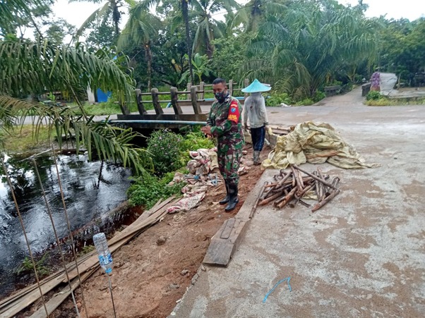 Kubu Raya – Sertu Bakti Uswanto merupakan anggota satgas TMMD bersama warga setempat melakukan finisihng jalan di lokasi TMMD ke- 111 Kodim 1207/Pontianak yang berada di Dusun Maju Jaya, Desa Kuala Mandor B, Kecamatan Kuala Mandor B, Kabupaten Kubu Raya, Kamis (15/07/2021).