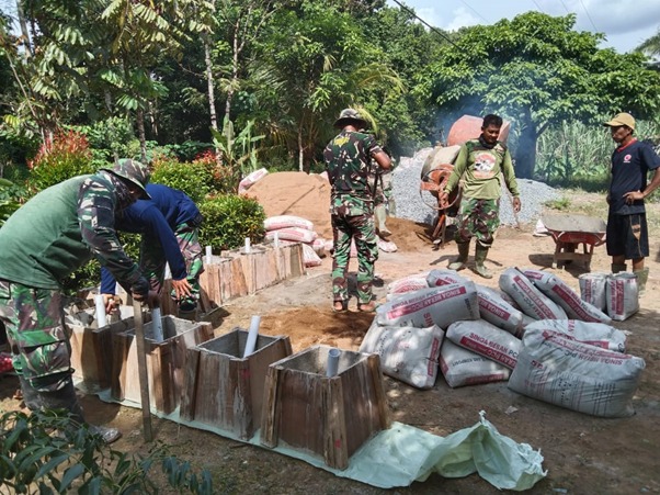 Satgas TMMD Ke-111 Kodim 1207/Pontianak Buat Landasan Tiang Bendera Untuk Warga