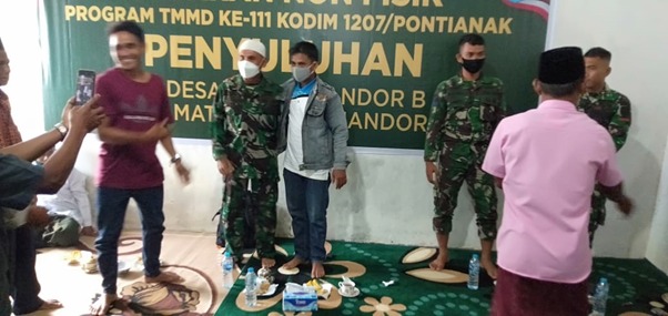 Kubu Raya – Setelah TMMD ke-111 Kodim 1207/Pontianak di Dusun Maju Jaya, Desa Kuala Mandor B, Kecamatan Kuala Mandor B, Kabupaten Kubu Raya, dinyatakan resmi ditutup, tampak salah seorang warga meminta foto bersama anggota satgas TMMD untuk dijadikan kenang-kenangan, Jumat (16/07/2021).