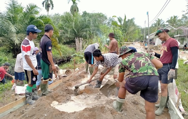 Kubu Raya – Satgas TMMD ke-111 Kodim 1207/Pontianak konsentrasi gempur sasaran pengecoran jalan di Dusun Maju Jaya, Desa Kuala Mandor B, Kecamatan Kuala Mandor B, Kabupaten Kubu Raya, Minggu (27/06/2021).