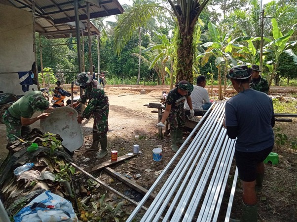 Satgas TMMD Ke-111 Kodim 1207/Pontianak Laksanakan Pengecatan Tiang Bendera