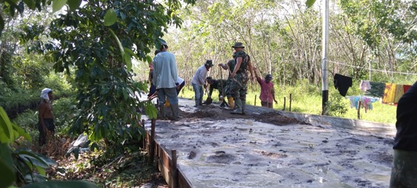 Bersama warga Desa Kuala Mandor B, satgas TMMD ke-111 Kodim 1207/Pontianak tetap menjaga dan memperhatikan akan hasil yang sudah dicapai. Karena dalam pekerjaan kadang kalau sudah badan terasa capek dan lelah akan mengurangi hasil kualitas hasil pekerjaan. Akan tetapi lain halnya dengan satgas TMMD Kodim 1207/Pontianak selalu mengecek dengan teliti setiap hasil dari pekerjaan yang baru selesai dicor per 5 meter akan dicek ketebalan dan lebarnya yang diharuskan tebal 15 cm dan lebar 3 meter. Sehingga belum terjadi pembekuan sehingga dapat tambah ketebalannya apabila kurang.