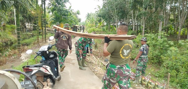 Satgas TMMD Ke-111 Kodim 1207/Pontianak Pikul Papan Mal
