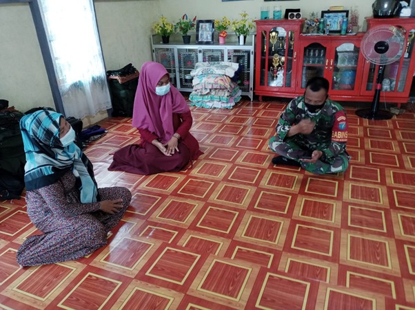 “Sesuai petunjuk komando atas kita sampaikan pentingnya jaga prokes terhadap diri kita dan lingkungan kita. Lingkungan saya disini, kita sampaikan kepada masyarakat agar warga saya disini sehat semua dan terbebas dari virus corona, jadi dalam masa pandemi ini selalu saya sampaikan ke masyarakat. Untuk bepergian ke kota juga saya sampaikan, kalau tidak perlu tidak usah saja, kita di kampung saja, nanti kalau virus sudah kabur baru boleh ke kota” papar Sertu Asiani.