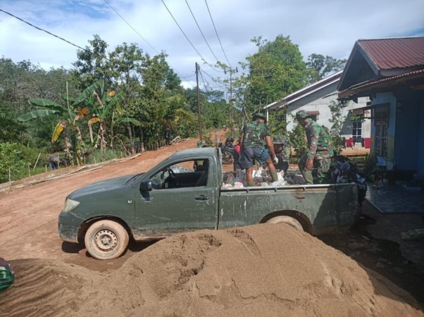Kubu Raya – Untuk mengejar waktu pembangunan jalan yang tersisa 1 minggu lagi, anggota satgas TMMD ke-111 Kodim 1207/Pontianak hari ini menyelesaikan pengangkutan semua bahan material seperti pasir dan batu dengan menggunakan mobil dinas, Sabtu (03/07/2021).