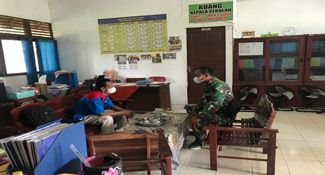 Di sela kesibukannya membangun jalan, anggota satgas TMMD menyempatkan diri mengunjungi SMP 21 Kuala Mandor B untuk meninjau kegiatan penerimaan murid baru. Tujuannya untuk memberi himbauan kepada guru dan orang tua agar saat mendaftarkan anaknya tetap menerapkan disiplin protokol kesehatan 3M. Mengingat saat ini semakin meningkatnya kasus positif covid 19 di tengah-tengah masyarakat.