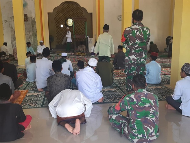 Bukan hanya waktu gotong royong, dalam ibadah pun nampak kompak,bersatu satu tujuan.memang kedekatan Babinsa bersama warga tak di ragukan lagi,inilah bentuk manunggal TNI bersama Rakyat.