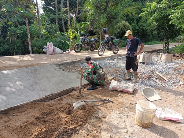 Sebelum Kembali Ke Satuan, Sertu Komang Sempatkan Diri Bantu Warga di Lokasi TMMD Ke-111 Kodim 1207/Pontianak Membuat Tanjakan Jalan Depan Rumah