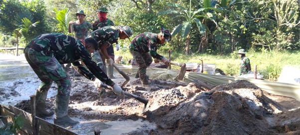 Semangat dan Jiwa Gotong Royong Tetap Berkobar Satgas TMMD Ke-111Kodim 1207/Pontianak