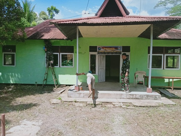 Kegiatan pengecatan dan pembenahan posko TMMD berjalan dengan lancer, terlihat semangat dalam berkerja. Sehingga terciptanya kemanunggalan TNI dan rakyat.