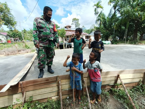 Serda Rahmanta salah satu personil satgas TMMD ke-111 yang sedang bersama anak-anak yang sedang bermain mengatakan, “Kami merasa prihatin dan sedih dengan adanya pandemi covid-19 pembelajaran tatap muka pun tidak diperbolehkan oleh pemerintah sampai waktu yang belum ditentukan, sehingga pengaruhnya sangat berdampak langsung terhadap pendidikan anak-anak, untuk itu ditengah kesibukan kami menyempatkan diri untuk bersama anak-anak di Dusun Maju Jaya ini yang sangat membutuhkan perhatian dan bimbingan khusus tentang pengetahuan yang mana seperti kita ketahui selama pandemi covid-19 yang tengah melanda anak-anak hanya sekolah secara online atau pembelajaran secara daring” ujarnya.